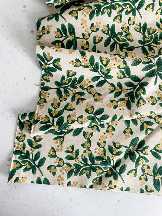 Holiday Classics – Mistletoe Natural Unbleached Metallic Canvas
