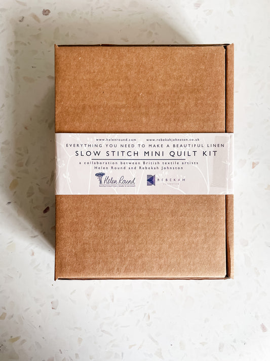 Helen Round Slow Stitched Coasters Kit in Linen Indigo Blue