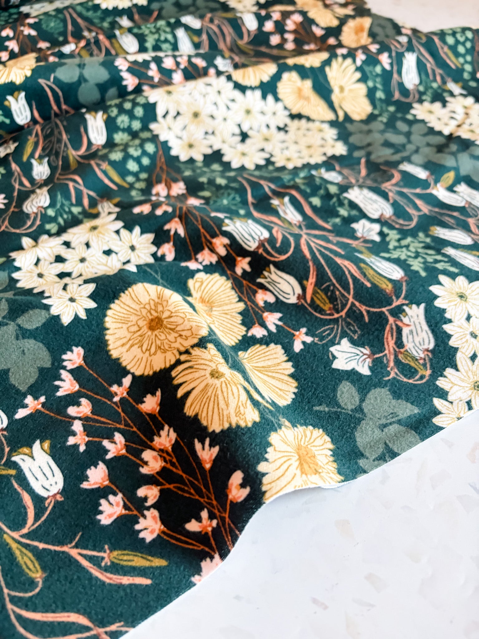 Printed on double-brushed 100% cotton flannel, this fabric is luxuriously soft, durable, and perfectly suited for quilts, cozy garments, and projects that bring a touch of the outdoors in.