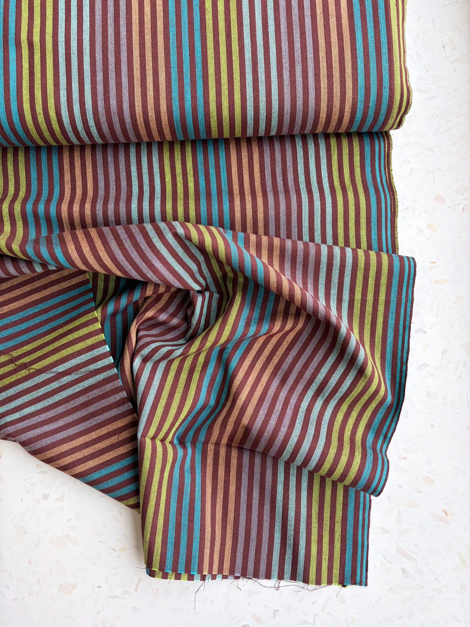 Perfect for shirts, dresses, skirts, and lightweight pants, this fabric also shines in home sewing—think pillow covers, table linens, or bold quilt blocks where the stripes can be turned and pieced for visual interest.
