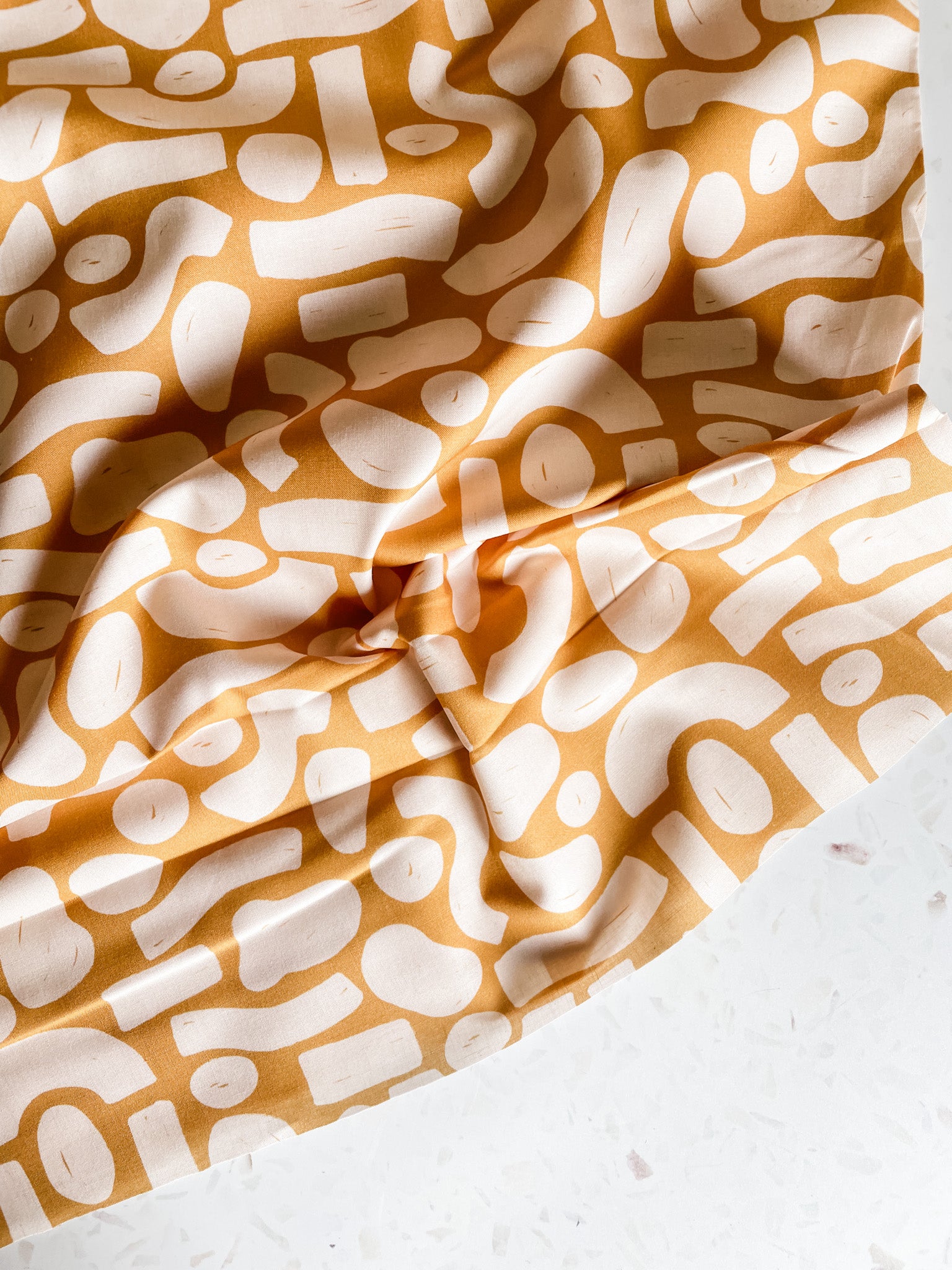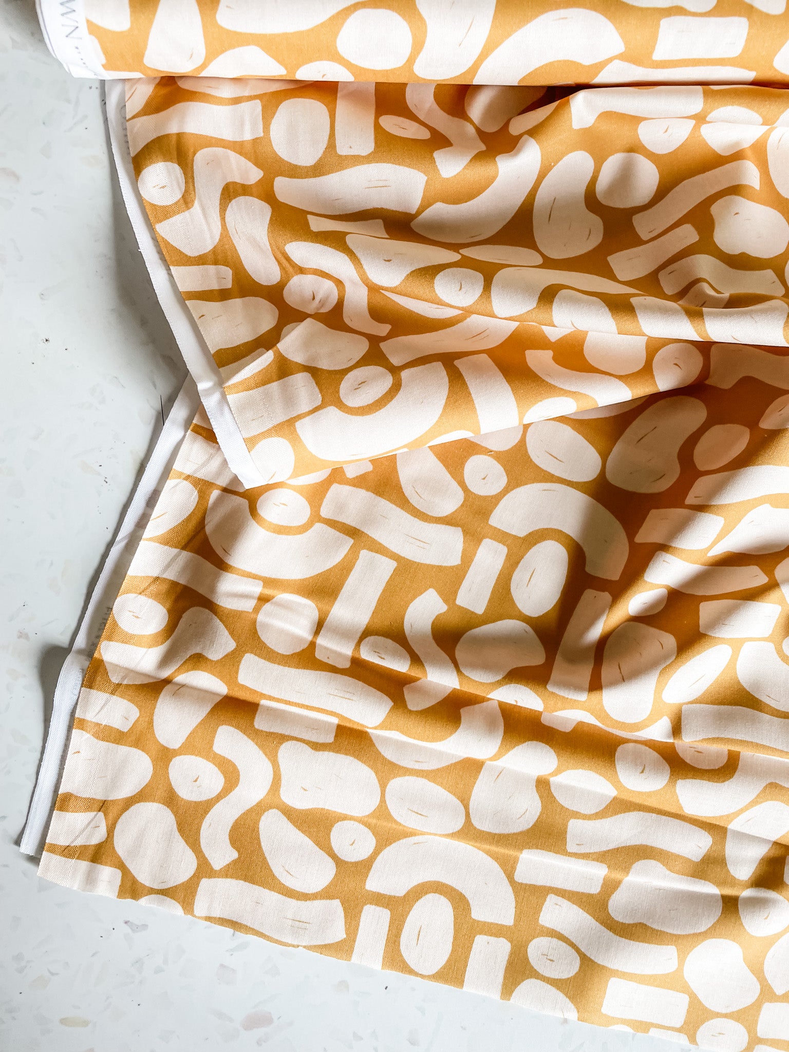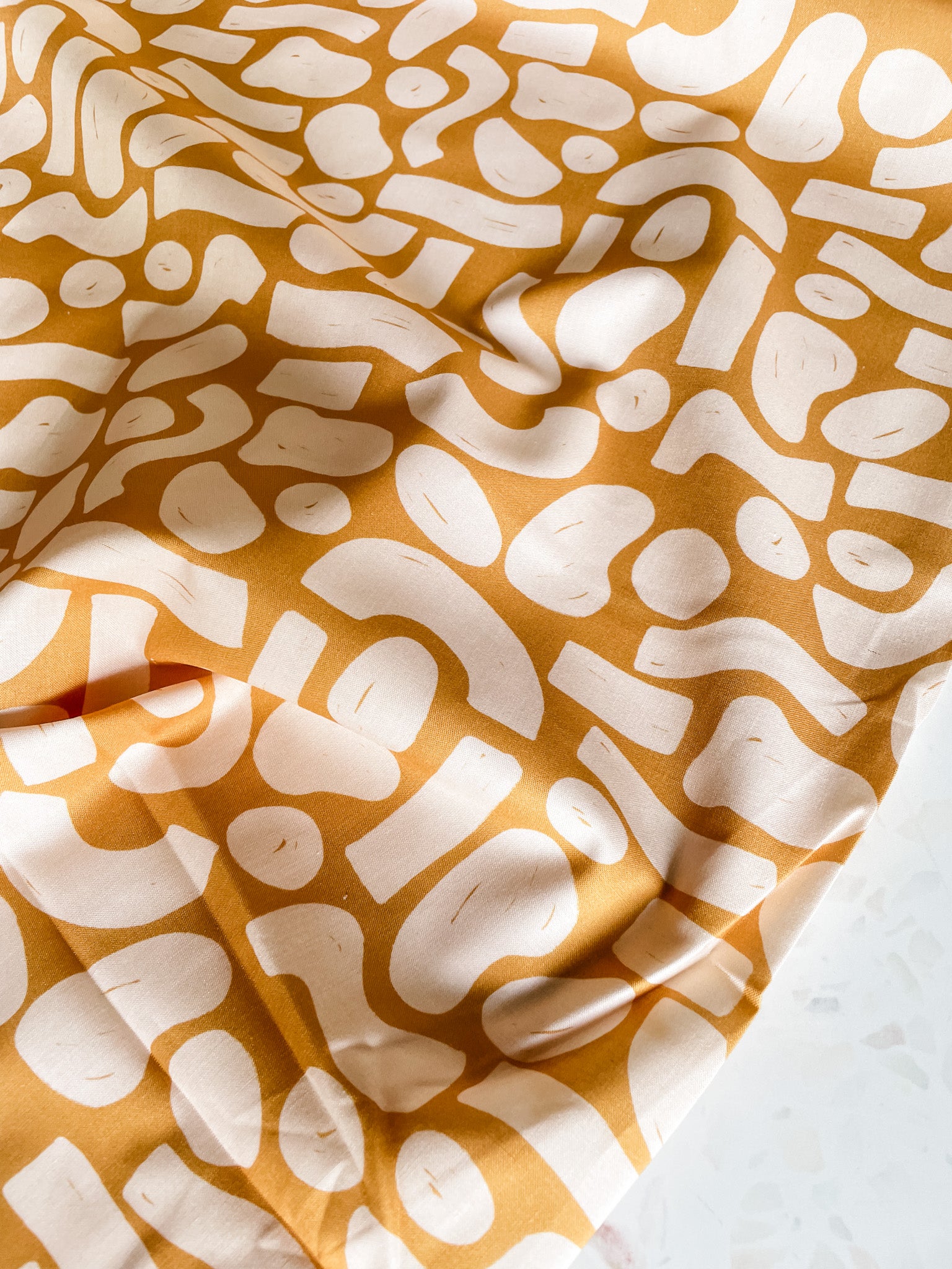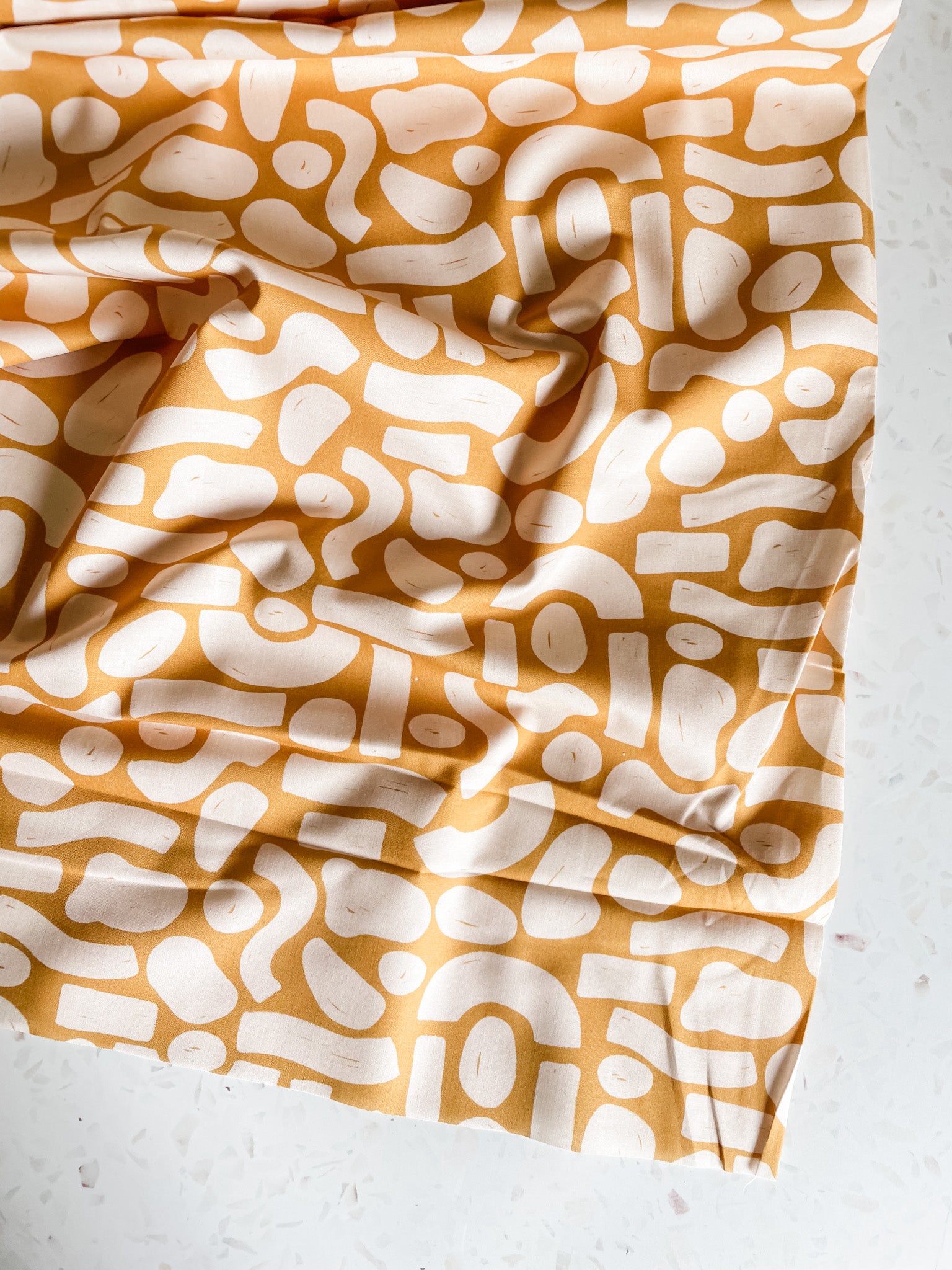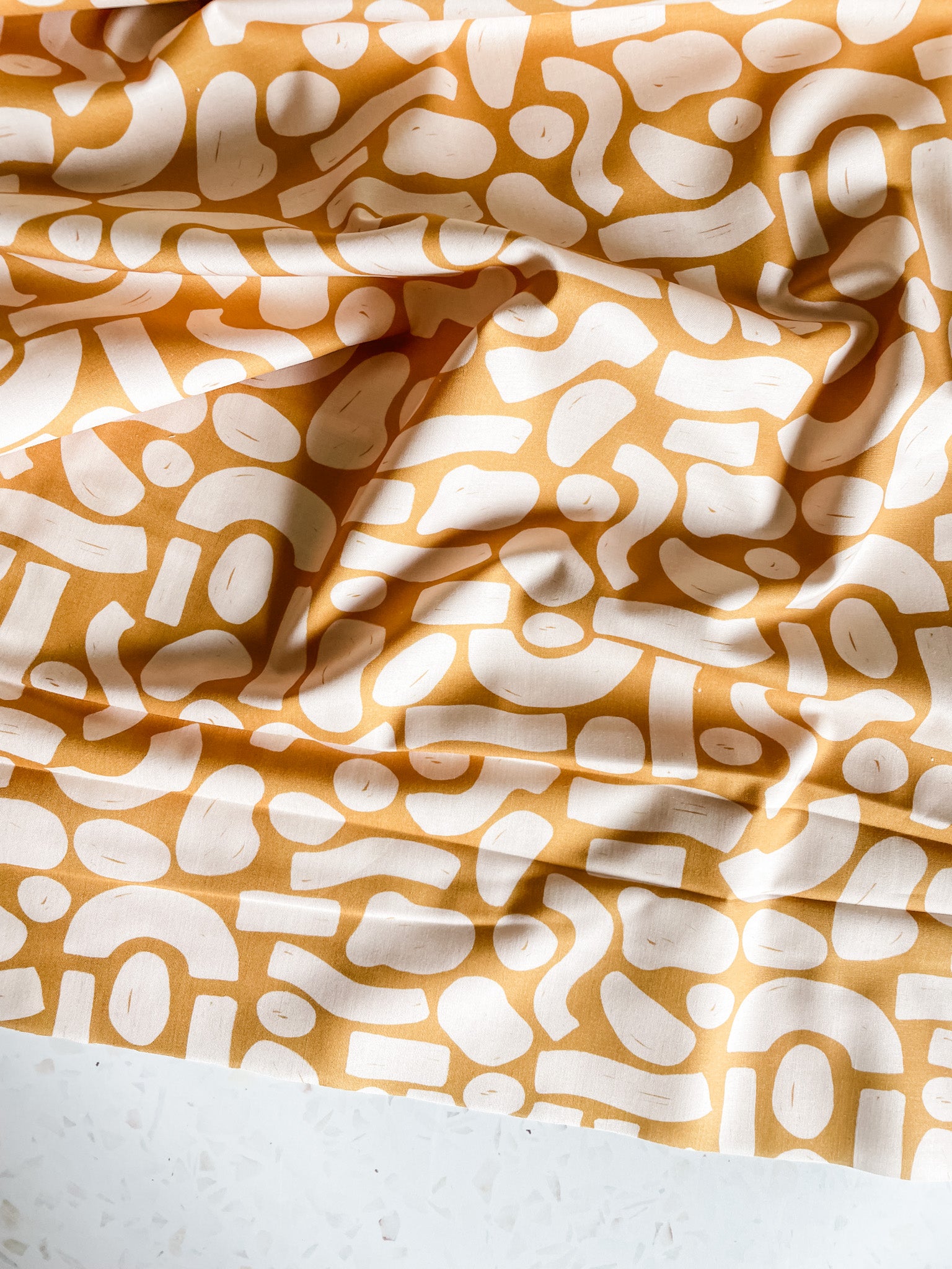 From Amy Schelle’s For My Boys collection for Moda, Milo is a bold, abstract print with painterly shapes that feel hand-cut and organic. In warm gold with soft cream markings, it’s a fabric full of energy and movement—perfect for adding depth and playfulness to your sewing.