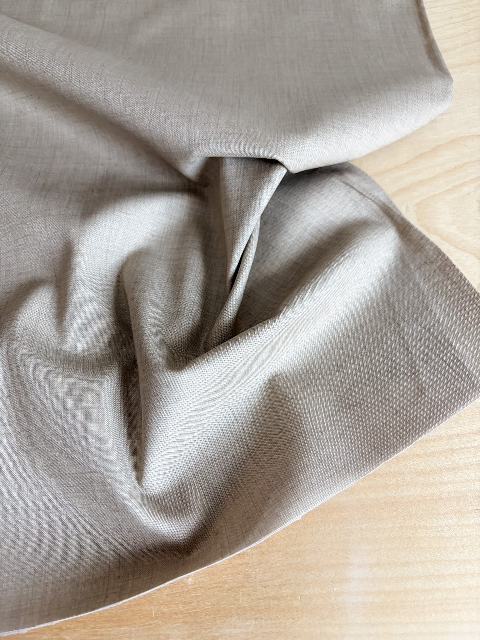 Part of the French General Solids collection for Moda, Oyster is a warm, pale gray with the gentle depth of natural linen and the smooth hand of premium quilting cotton. Its subtle texture and earthy tone make it a beautiful grounding fabric—equally at home as a quilt background or a garment fabric.