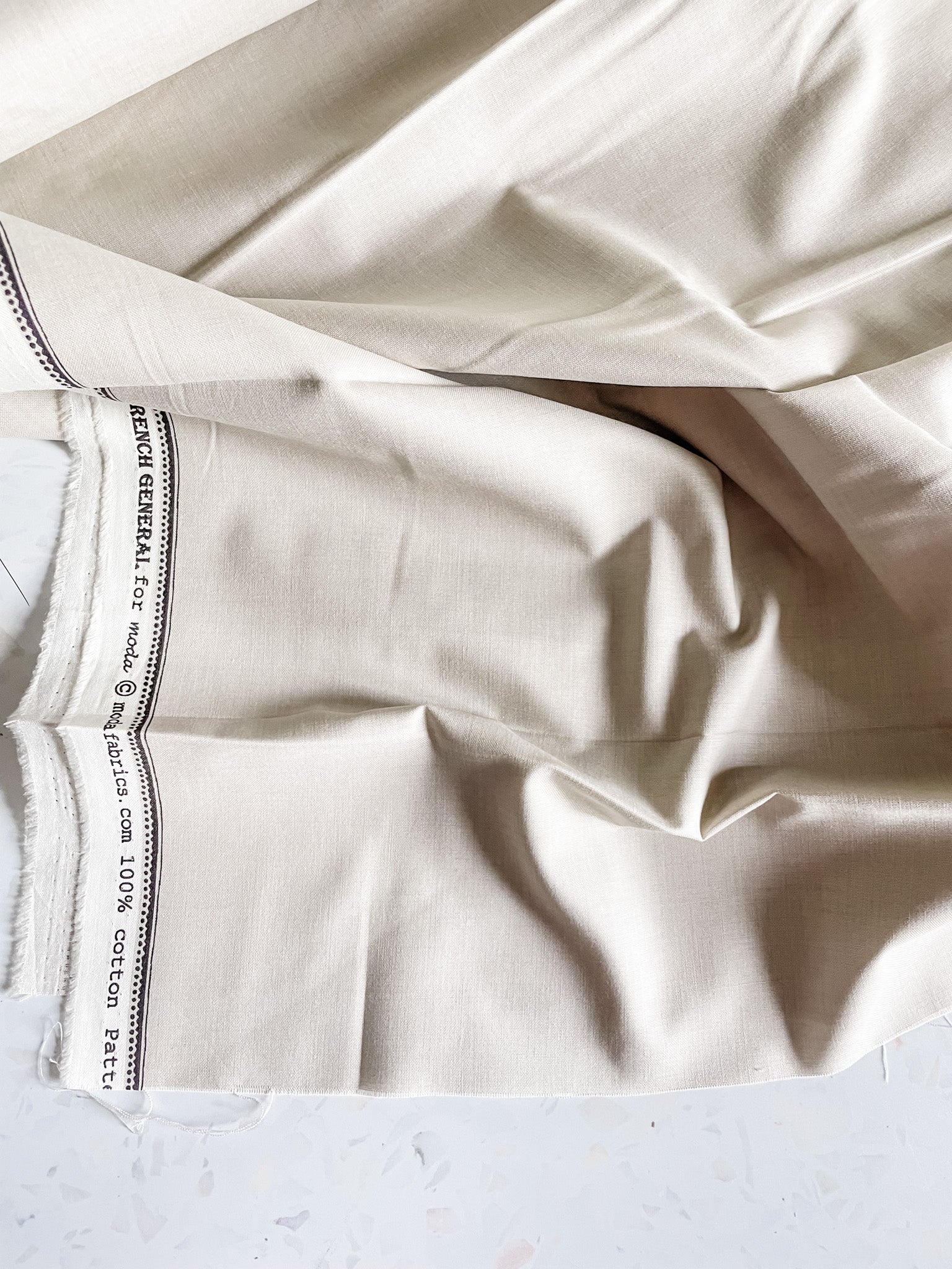 From French General for Moda, Smoke is a soft, weathered gray that carries the look of washed linen with the smooth hand of quilting cotton. Its neutral tone makes it endlessly versatile—perfect as a calming background in quilts, a timeless garment fabric, or a complement to French General’s classic prints.
