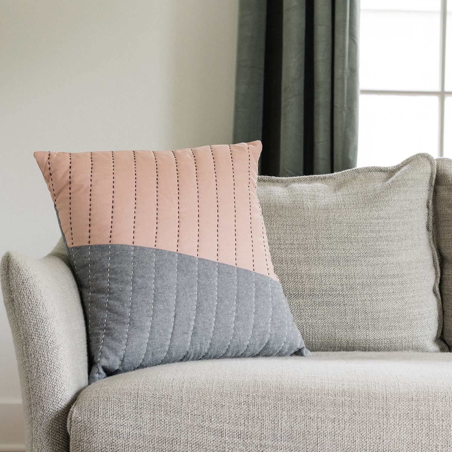 The Guest Pillow Quilt is from the book Inheritance: Minimal Quilts for the Modern Home (2018) by Riane Elise, and this pattern is available as a standalone pattern.