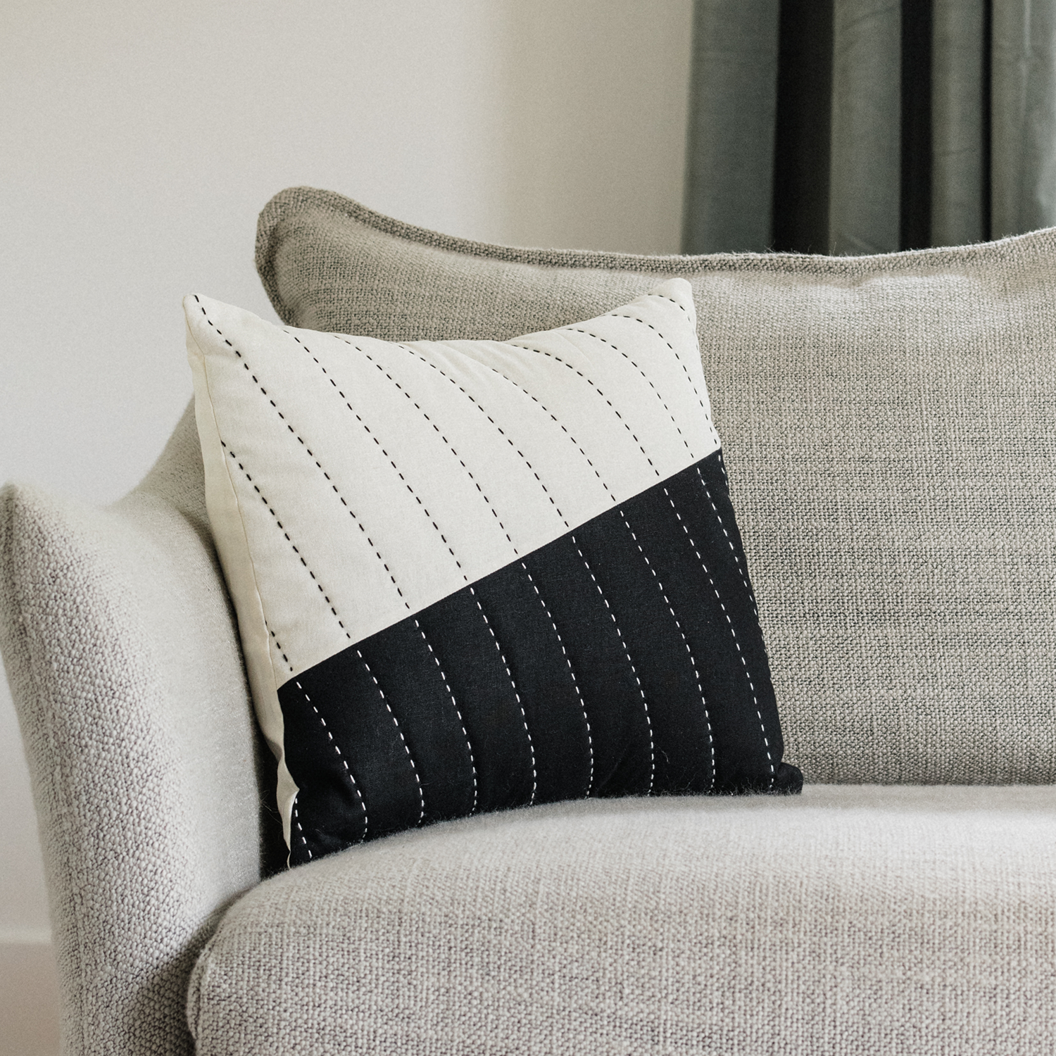 The Guest Pillow Quilt is from the book Inheritance: Minimal Quilts for the Modern Home (2018) by Riane Elise, and this pattern is available as a standalone pattern.