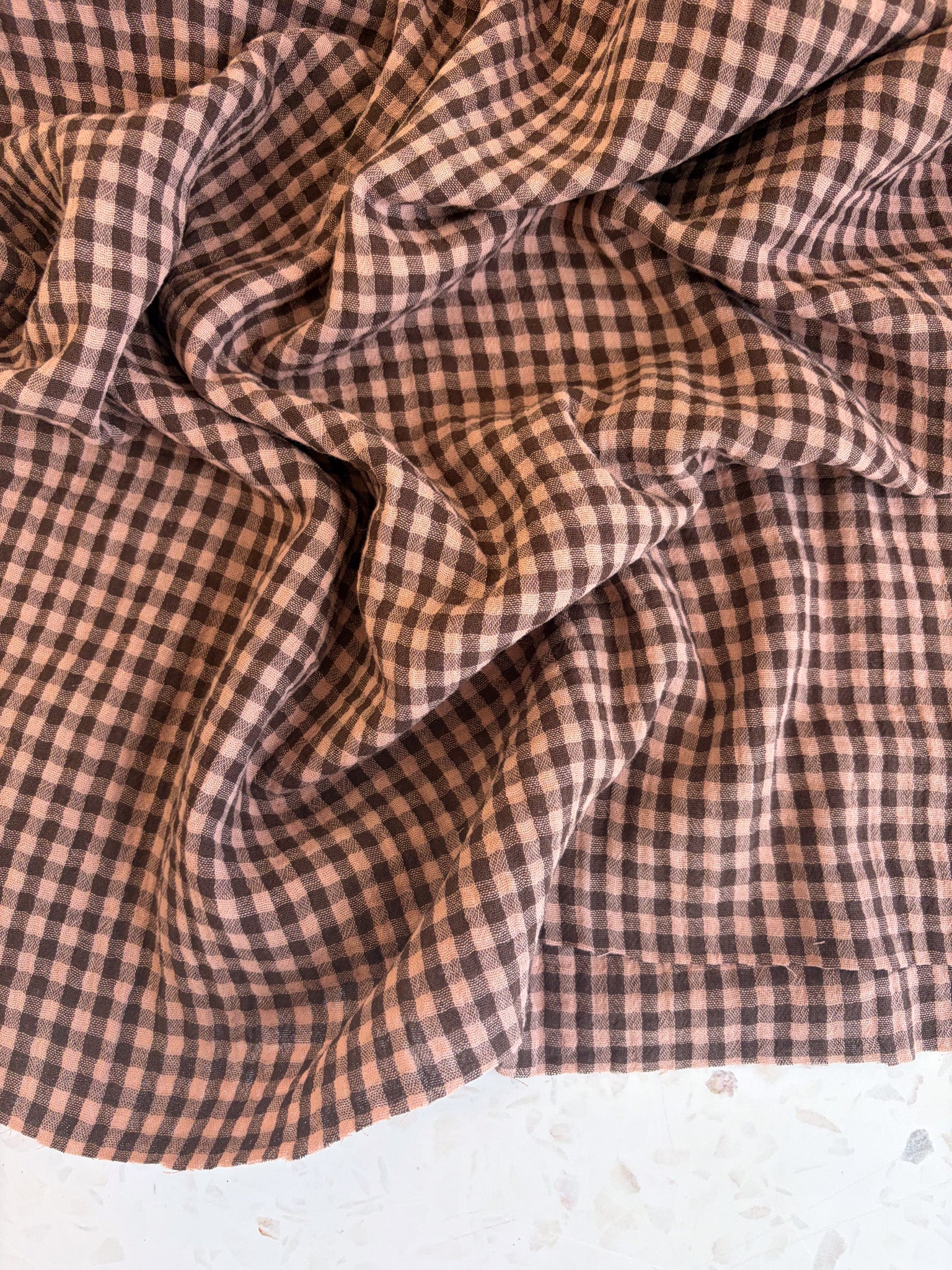 Lennon Yarn Dyed Double Gauze Check in Fawn/Espresso