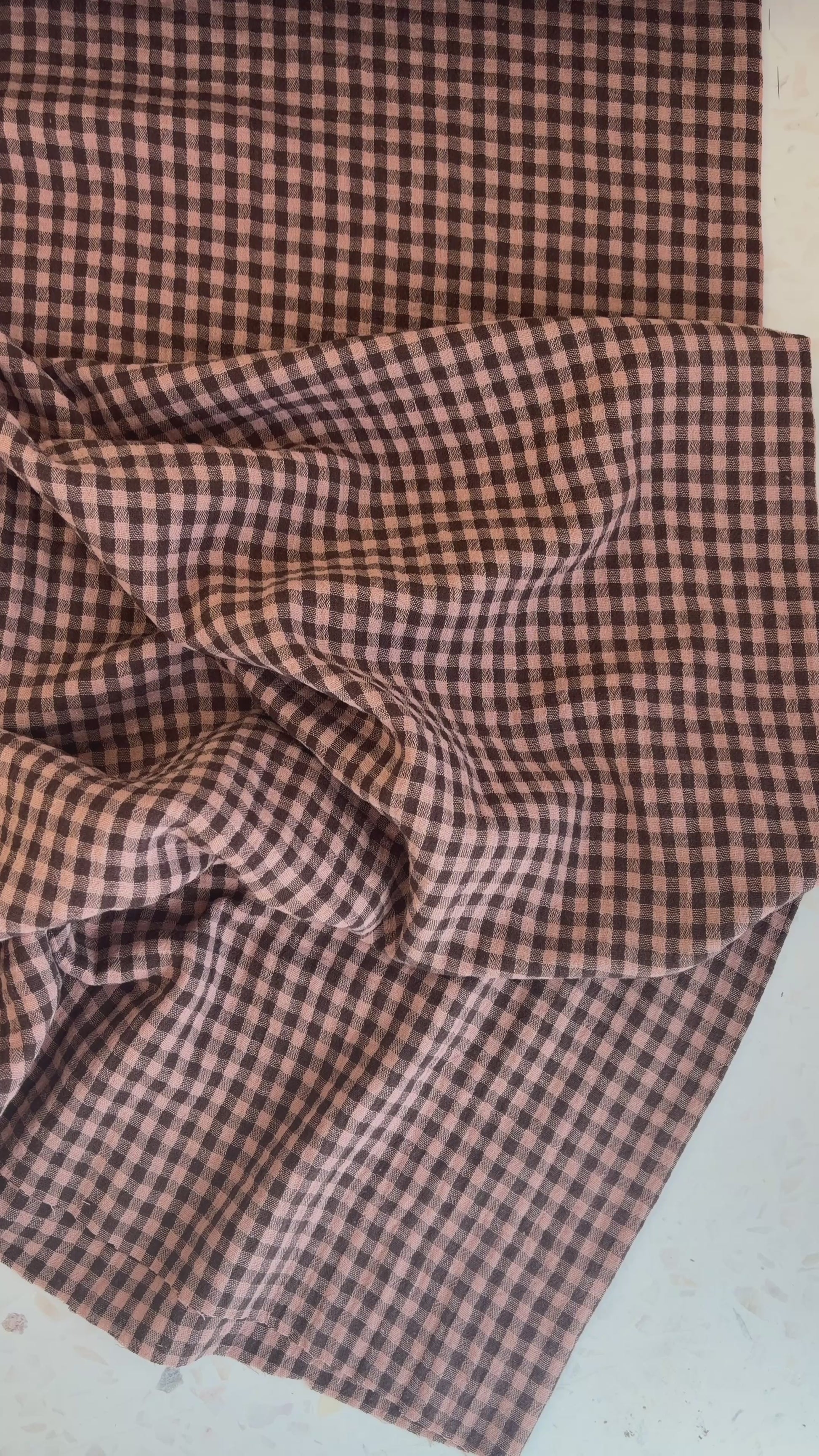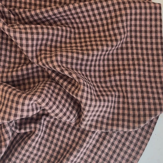 Woven from 100% organic cotton, Lennon is airy without being flimsy and has that signature double gauze crinkle that only gets better with time. The pink and brown check adds subtle depth—rich but muted, playful yet grounded—making it a natural choice for everyday garments and baby goods that you’ll reach for again and again.