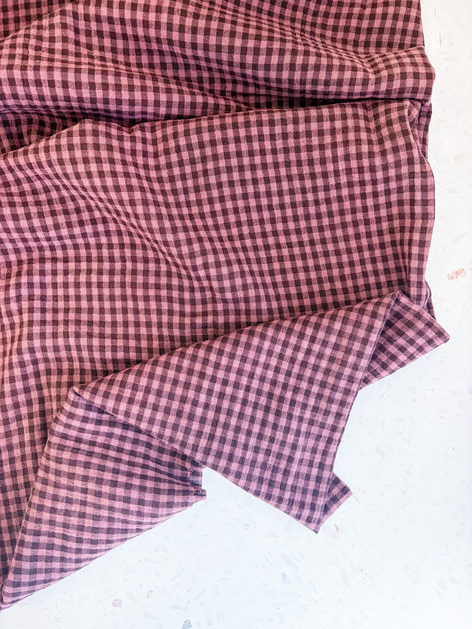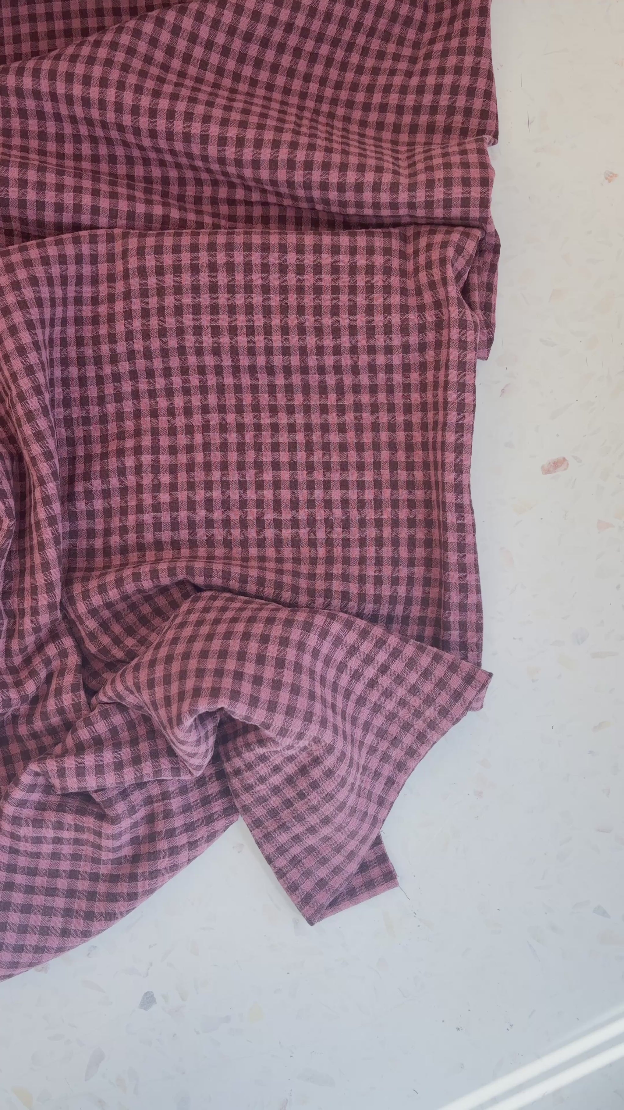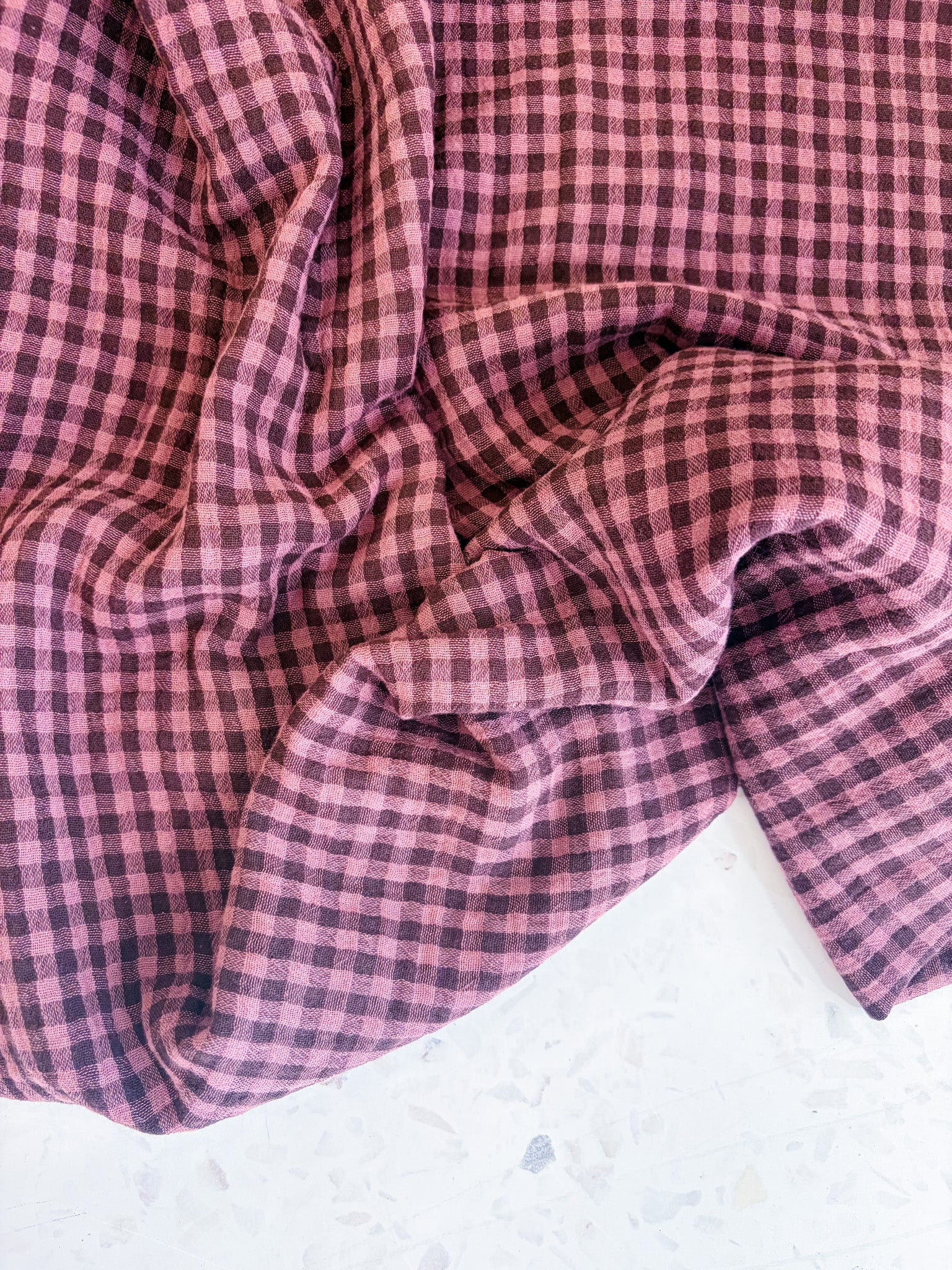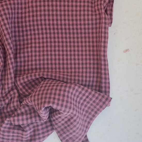 Woven from 100% organic cotton, Lennon is airy without being flimsy and has that signature double gauze crinkle that only gets better with time. The plum check adds subtle depth—rich but muted, playful yet grounded—making it a natural choice for everyday garments you’ll reach for again and again.