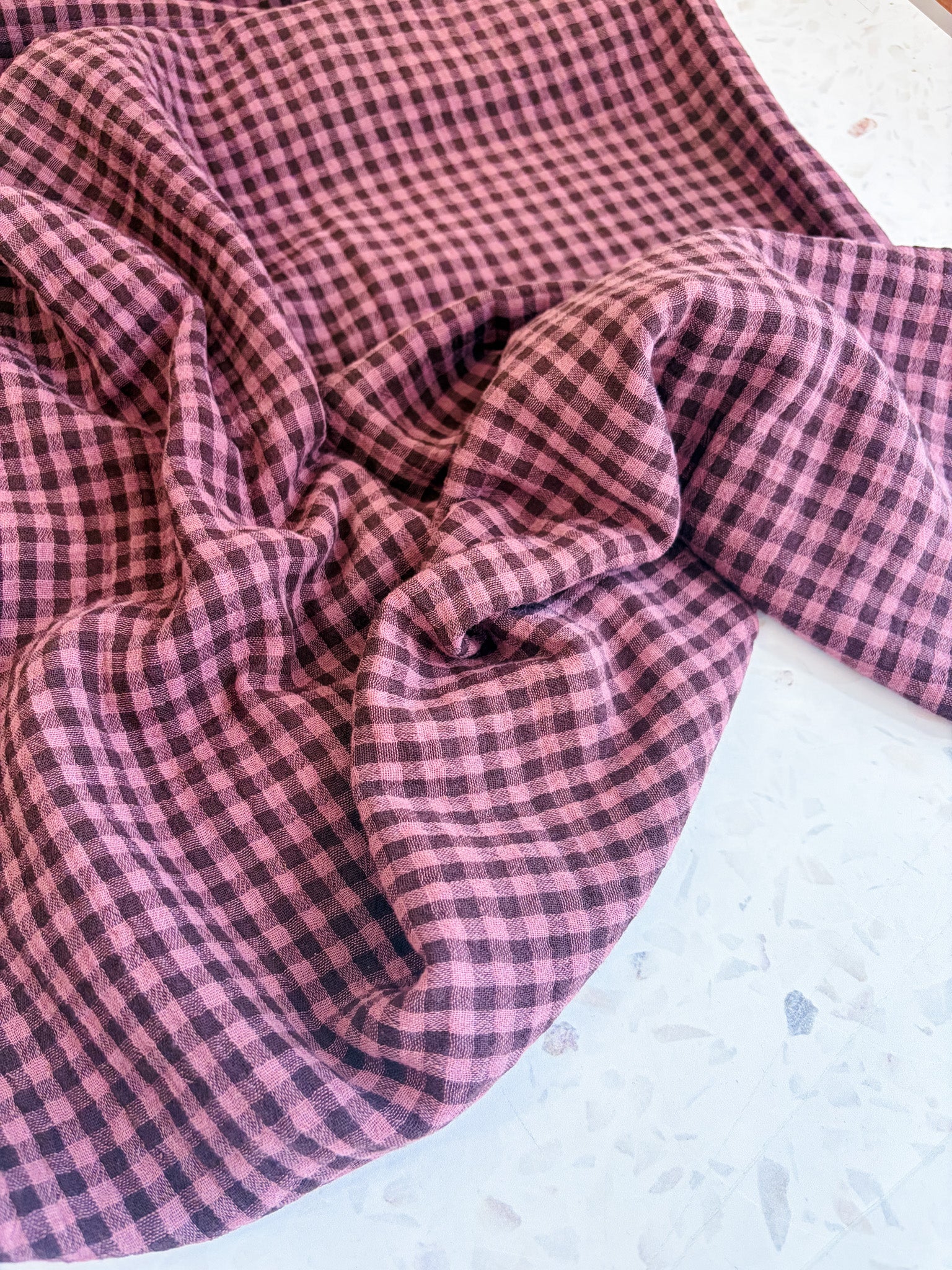 Lennon Yarn Dyed Double Gauze Check in Plum