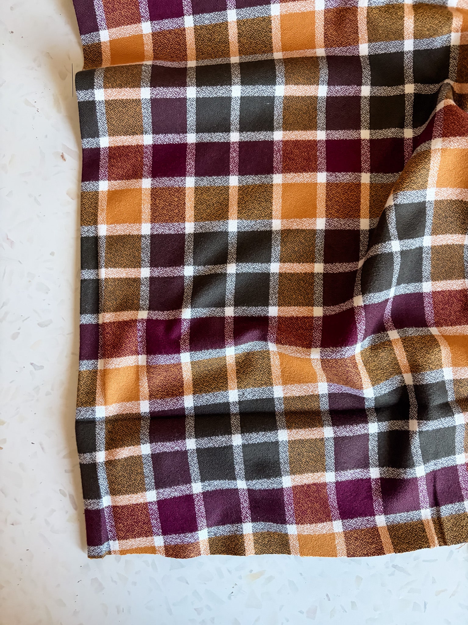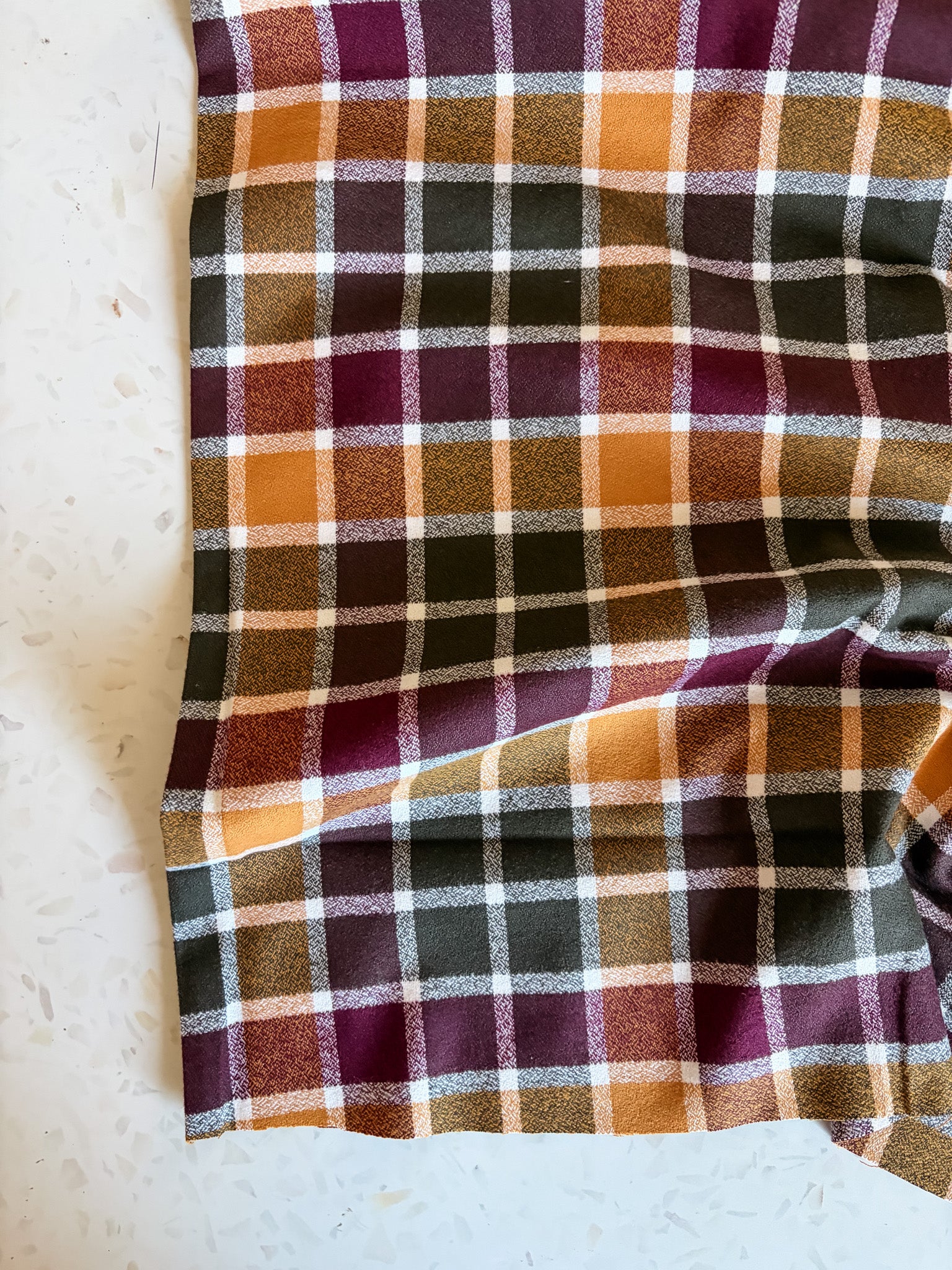 Rich and earthy, this flannel is the definition of cozy sophistication. Woven from 100% cotton and brushed on both sides, it features tones of pine, plum, rust, and mustard in a classic plaid that feels timeless and grounded.