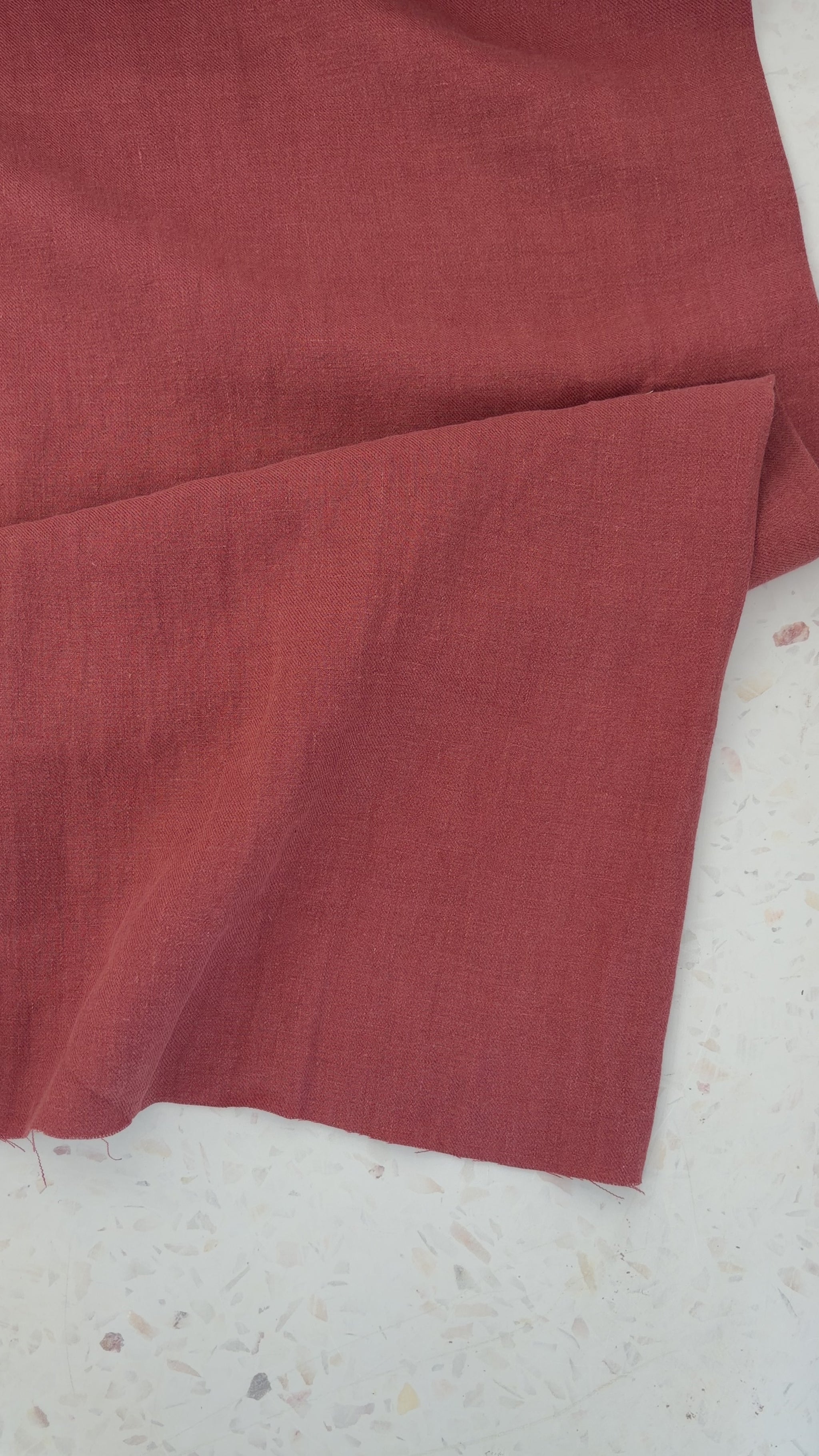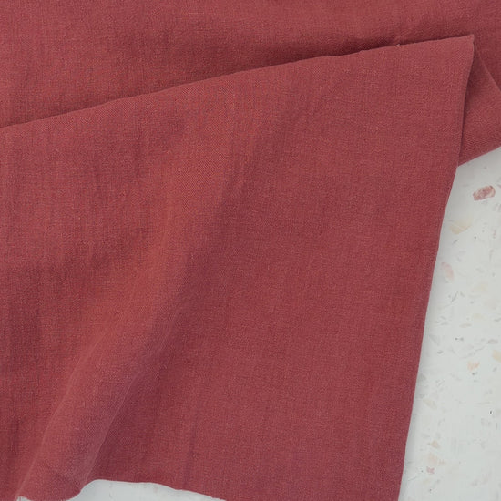 Nomad in Marsala is a beautifully weighty linen twill with a soft sand-washed finish and a rust red tone that feels timeless and grounded. This is a substantial linen—durable, drapey, and deeply satisfying to work with—designed for pieces that are meant to be worn, used, and loved for years.