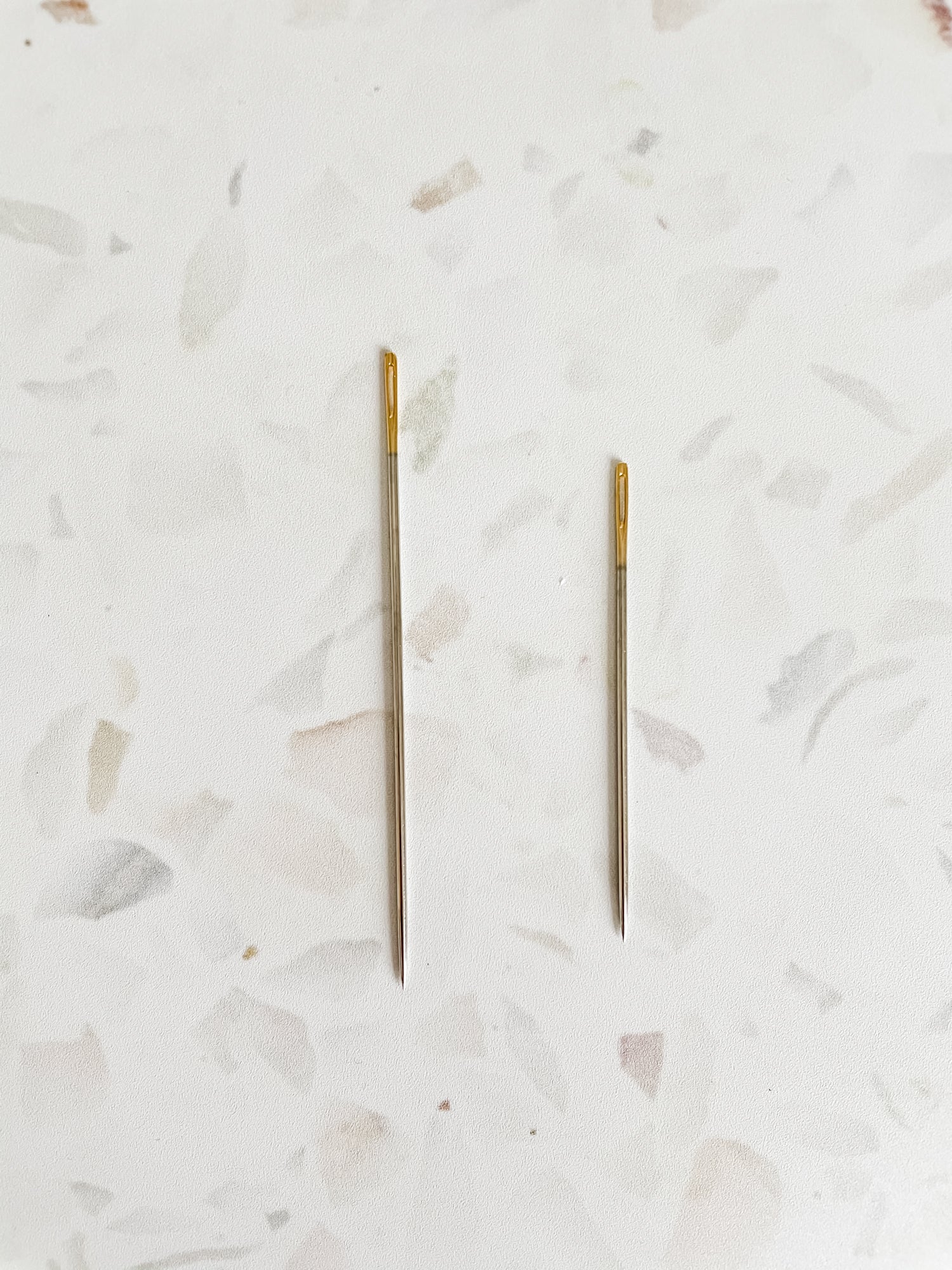 Sashiko needles are the perfect accompaniment to any sashiko thread project. These needles are long with a wide eye, making it easy to work with thick thread and big stitching.