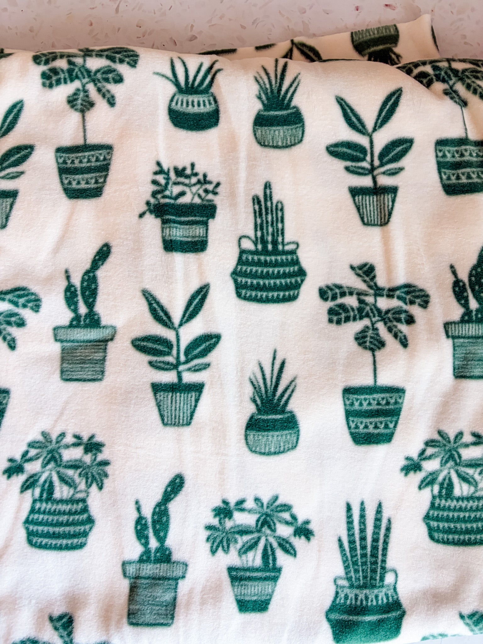 Bring a little greenhouse magic to your cozy projects with this charming houseplant fleece. Featuring an assortment of leafy potted plants in deep, rich greens on a soft cream background, it’s the perfect blend of playful and modern — like your favorite plant shelf, but extra snuggly.