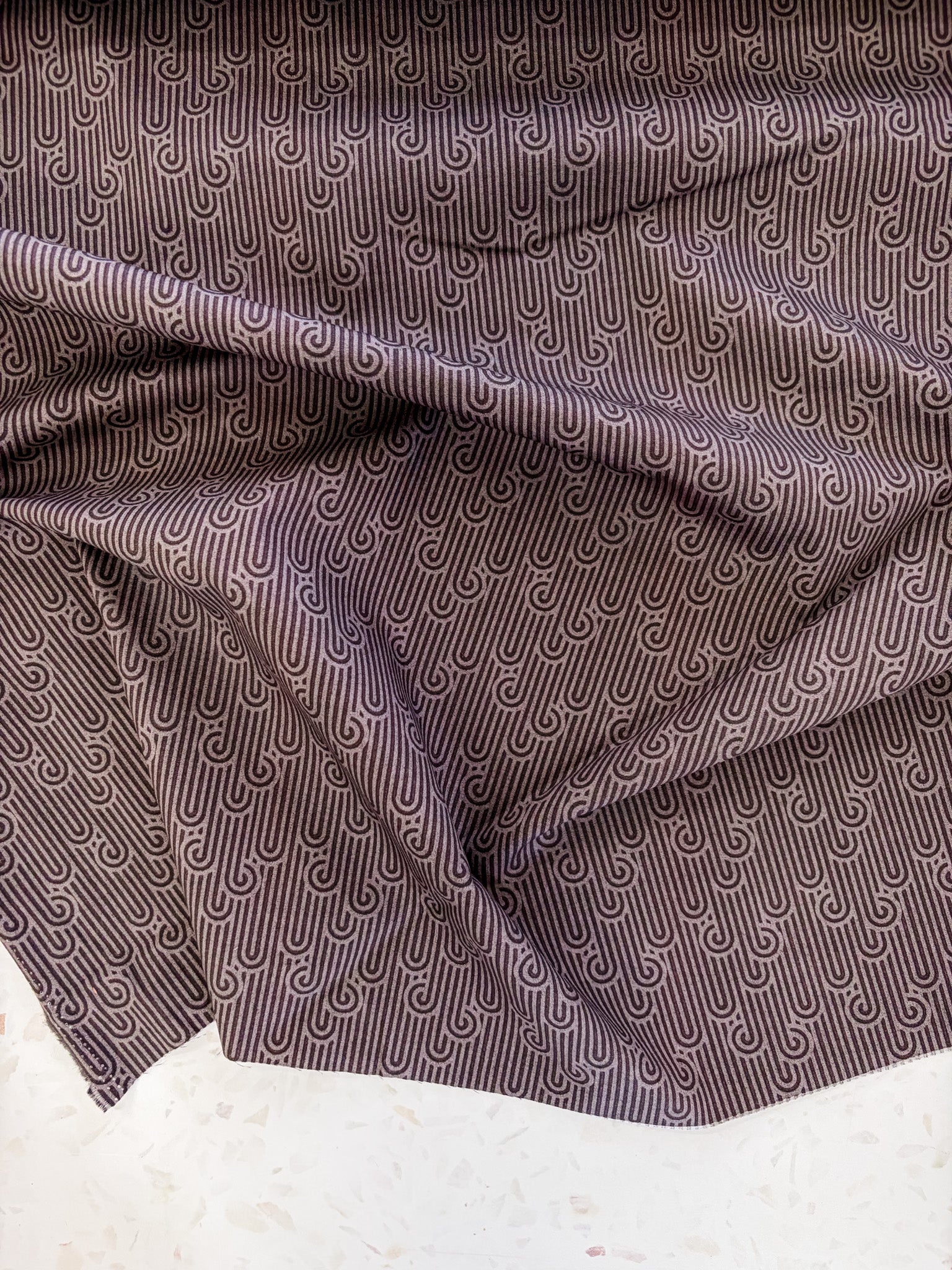 This graphic print is perfect for projects that benefit from structure and visual rhythm. Elegant and contemporary purple hues enhance this symmetrical, architectural design.