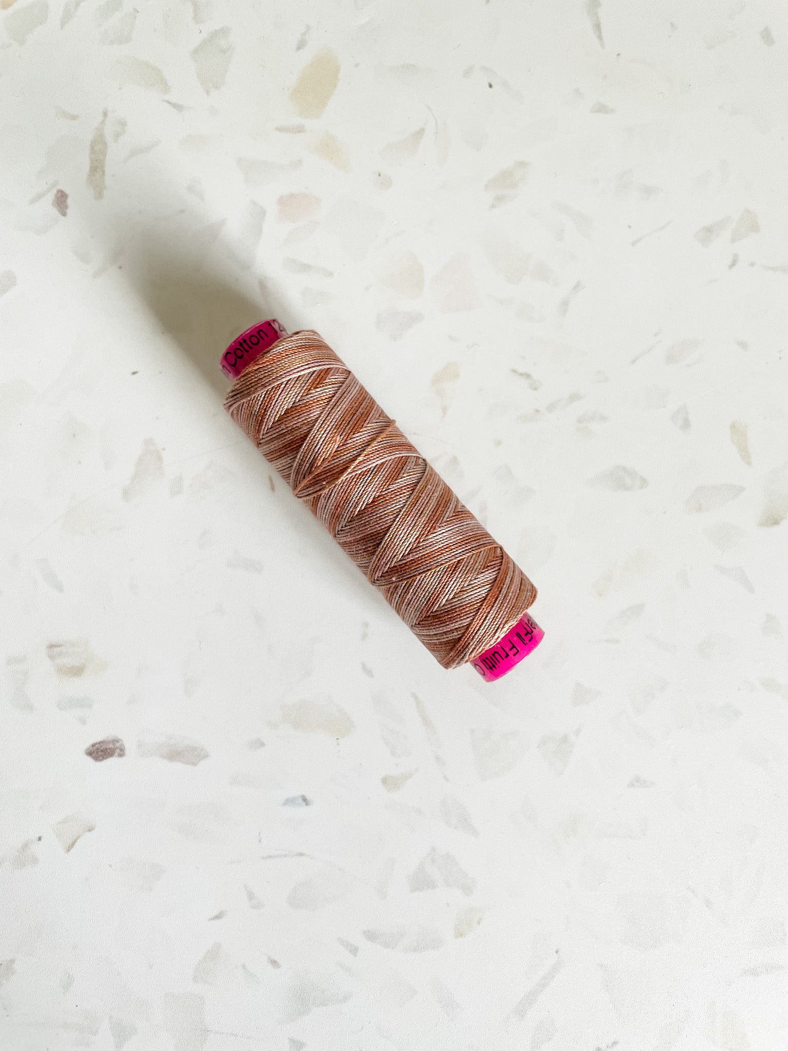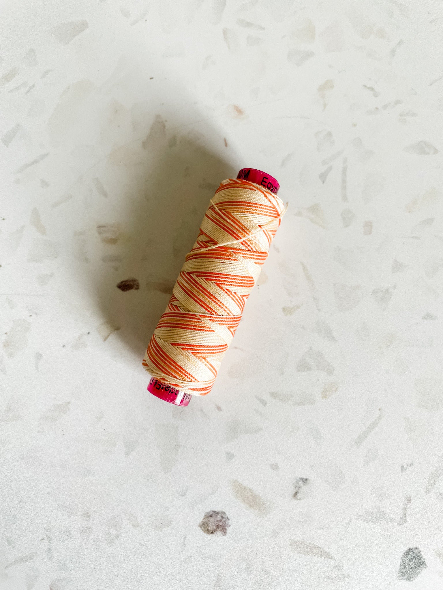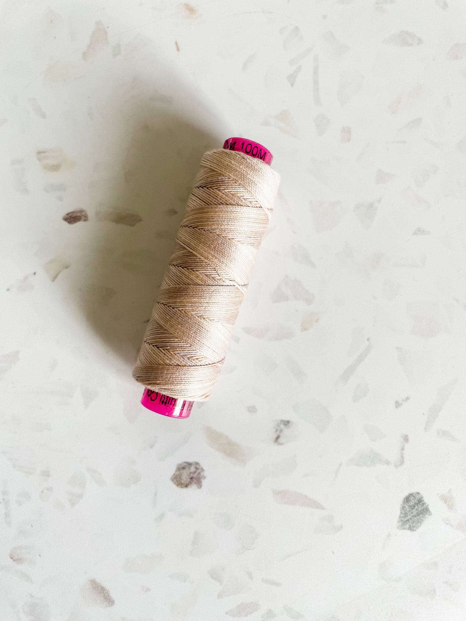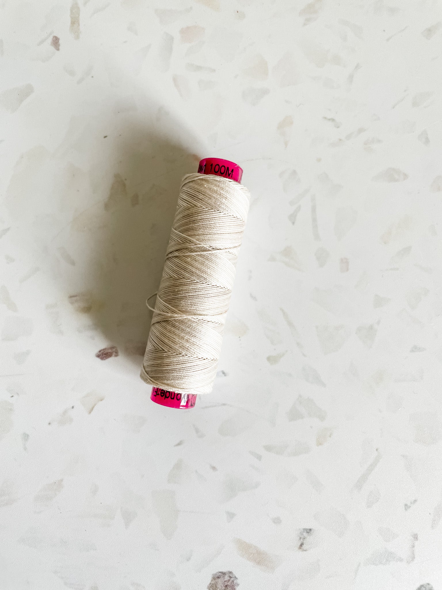 This 12wt, 3-ply, double-gassed Egyptian cotton from Wonderfil is perfect for hand quilting. The thread is sturdy and stands up to light tugging and pulling during the handwork process. Each skein is 100% cotton and comes with about 200 meters of thread.